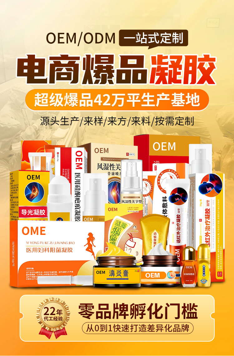 - **功效与质地定制**:涵盖医用凝胶(妇科凝胶、创面修复凝胶、痔疮凝胶)、医美凝胶(术后修护凝胶、保湿凝胶)。
