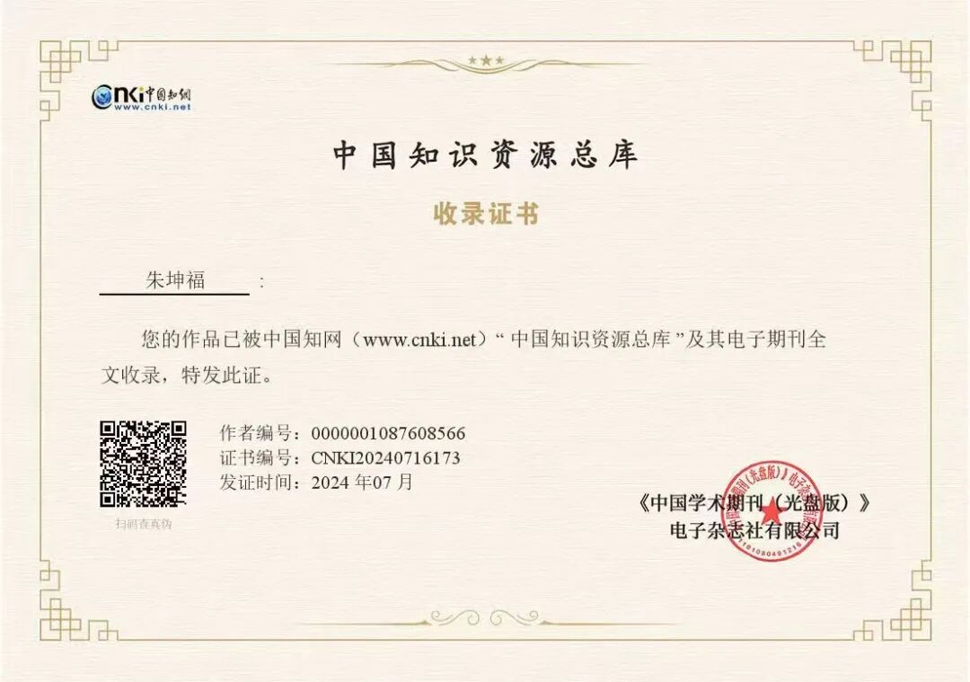 科研积淀深厚:61 篇论文覆盖多类核心期刊 据 中国知网《学者科研成果检索报告》显示,朱坤福先生累计发表论文共 61 篇,其中55 种期刊刊载的 60 篇期刊论文,总被引 310 次、总下载 33312 次,包含基金论文 7 篇、CSCD 论文 1 篇、中文核心期刊论文 18 篇,相关成果已获中国知网 “中国知识资源总库” 官方收录认证。