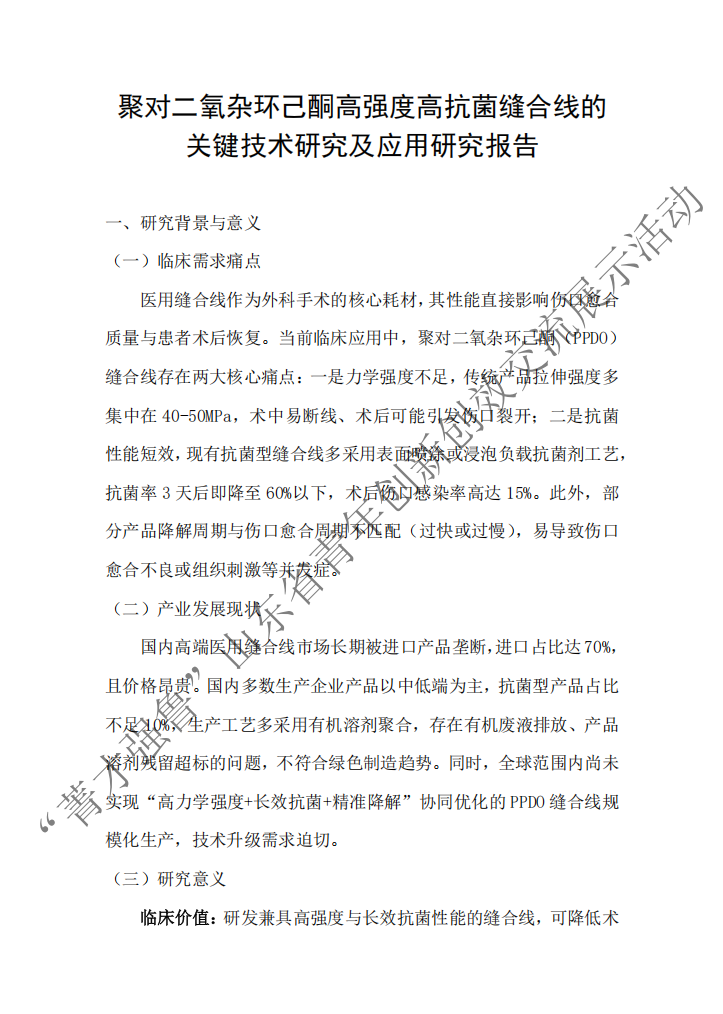 近日,由共青团山东省委、省科协、省工信厅等单位联合主办的“2025年度菁才强鲁山东省青年创新创效交流展示活动”圆满落幕。山东朱氏药业集团自主研发的“聚对二氧杂环己酮高强度高抗菌缝合线关键技术研究及应用”项目,从众多创新成果中脱颖而出,荣获本次大赛铜奖。 本次交流展示活动以“菁才强鲁 智创未来”为主题,旨在挖掘、培育和展示山东省青年在科技创新与产业创效方面的成果,为青年科技人才搭建交流平台,助力山东新旧动能转换和高质量发展。朱氏药业集团的获奖项目,正是山东青年科技工作者聚焦产业痛点、勇于攻关核心技术的生动体现。创新突破:重新定义外科缝合线