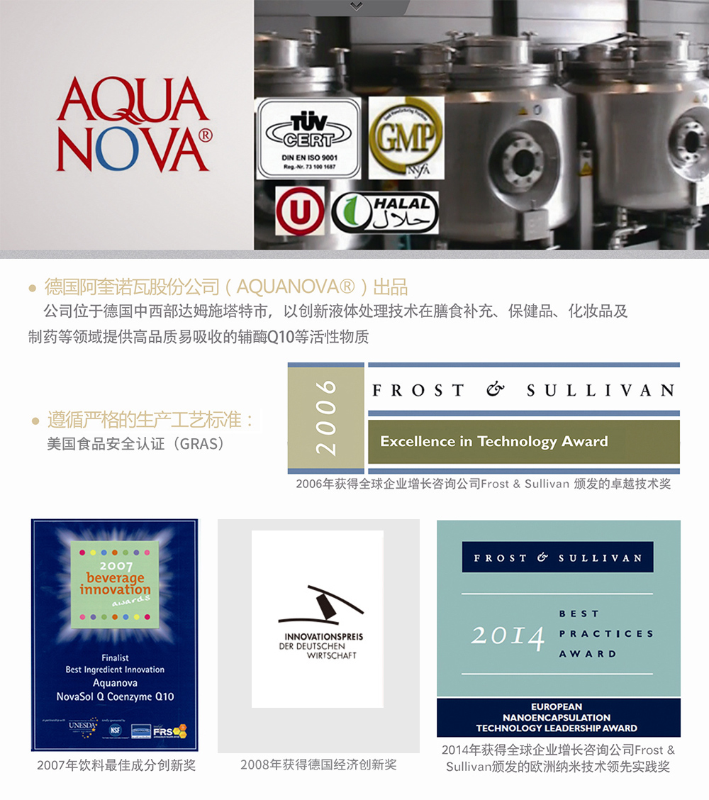 阿奎诺瓦股份公司(AQUANOVA AG)是诺惠辅酶Q10的生产商,位于德国达姆施塔特,是德国黑森林州南部的中型城市,被誉为“科学之城”。