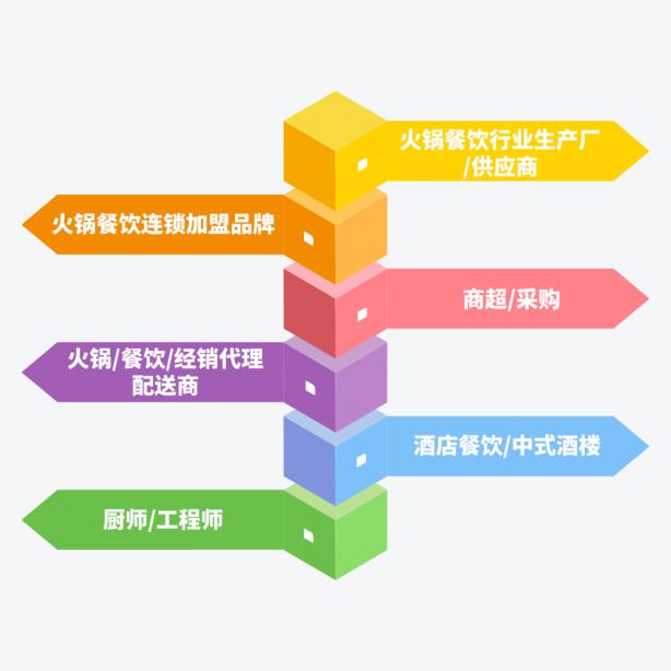 展示范围 火锅食材展区 牛羊肉制品、火锅涮品、冷冻海鲜水产、冷冻调理品、鱼糜及肉糜制品、菌菇类、豆制品、毛肚、百叶、鸭血、火锅面 火锅调味料展区 火锅底料蘸料、复合调味料、油脂麻酱、辣椒油、花椒油、香油、骨汤清汤、菌汤 火锅饮品及原辅料展区 果汁、冰淇淋、鲜榨饮品、酒精类饮品(白酒/啤酒/黄酒)凉茶、碳酸饮料、配料、香料、食品添加剂 火锅用具及设备展区 电磁炉、火锅铜锅制品、洗碗机、洗菜机、切片机、油烟净化设备、火锅桌椅、冷冻食品展示设备、火锅餐具