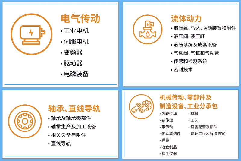 展会概览 自从1991 年首次举办以来,PTC ASIA 深耕于动力传动与控制行业中已有30 余载,为行业内的品牌展示、贸易合作和技术交流等提供了绝佳的平台,深深地推动着行业向智能制造的发展。展会展品范围涵盖了液压、气动、密封、齿轮、电机、传动联结件、链传动、带传动、弹簧、轴承和工业分承包等11 大类,为未来智能工厂的落地提供了核心零部件一站式的采购平台。 展品范围: 1, 流体动力:液压泵、马达、驱动装置和附件、液压阀、液压缸、液压系统及成套设备、气动阀、气缸和气动管、流体压力软、硬管和管接头、传感和检测系统、密封技术 2, 机械传动、零部件及制造设备:齿轮传动、链传动、带传动、传动联结件、弹簧、冶金制品、各类机械装备及检测仪器 3, 轴承:轴承及其轴承零部件、轴承生产及加工设备、相关设备与附件 4, 直线运动系统:直线导轨、直线运动驱动元件/系统、直线运动系统、电动机械致动装置、复式运动系统 5, 电气传动:工业电机、伺服电机、变频器、驱动器、电磁装备