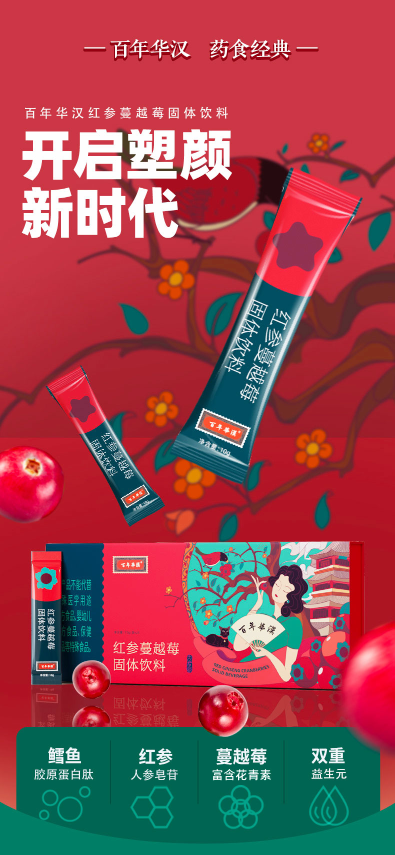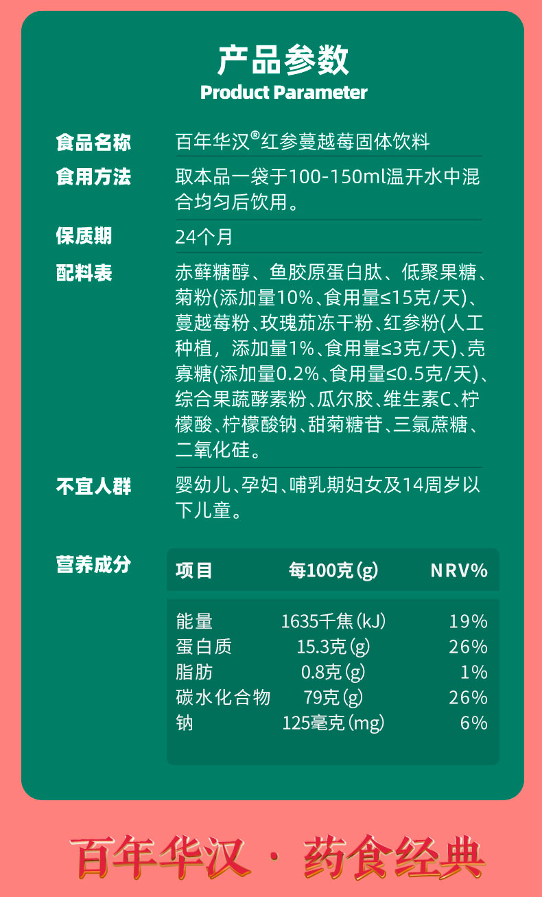 食品名称百年华汉@红参蔓越莓固体饮料