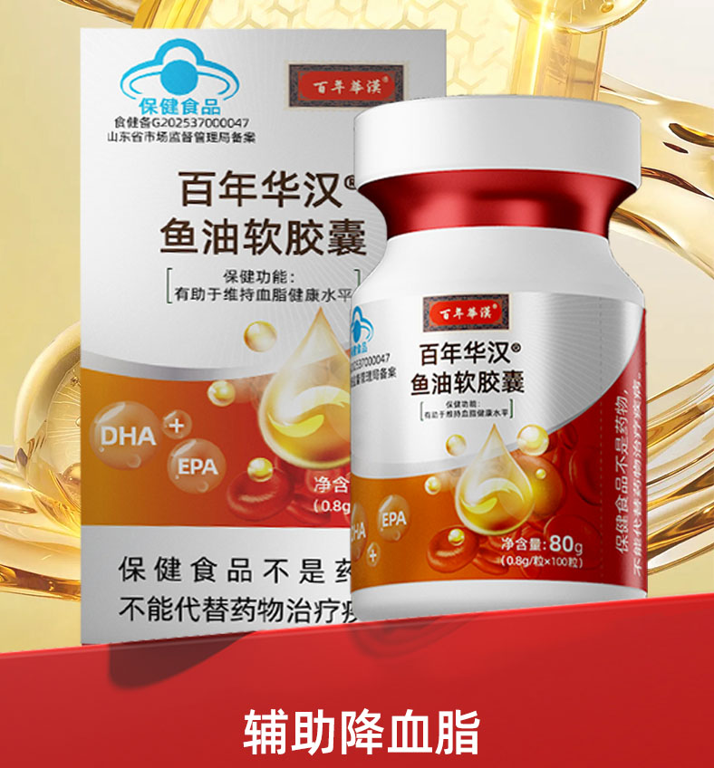 百年华汉鱼油软胶囊 高含量降血.